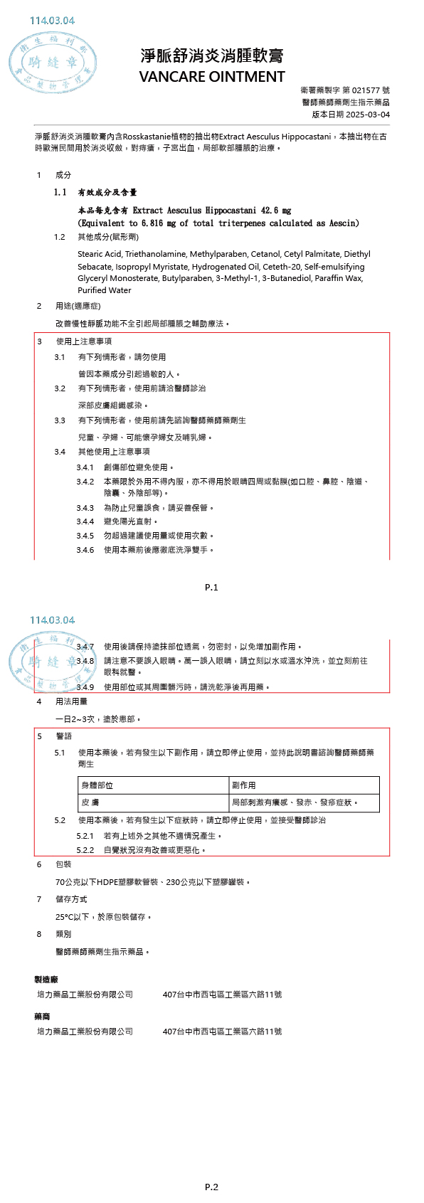 改善慢性靜脈功能不全引起局部腫脹之輔助療法。